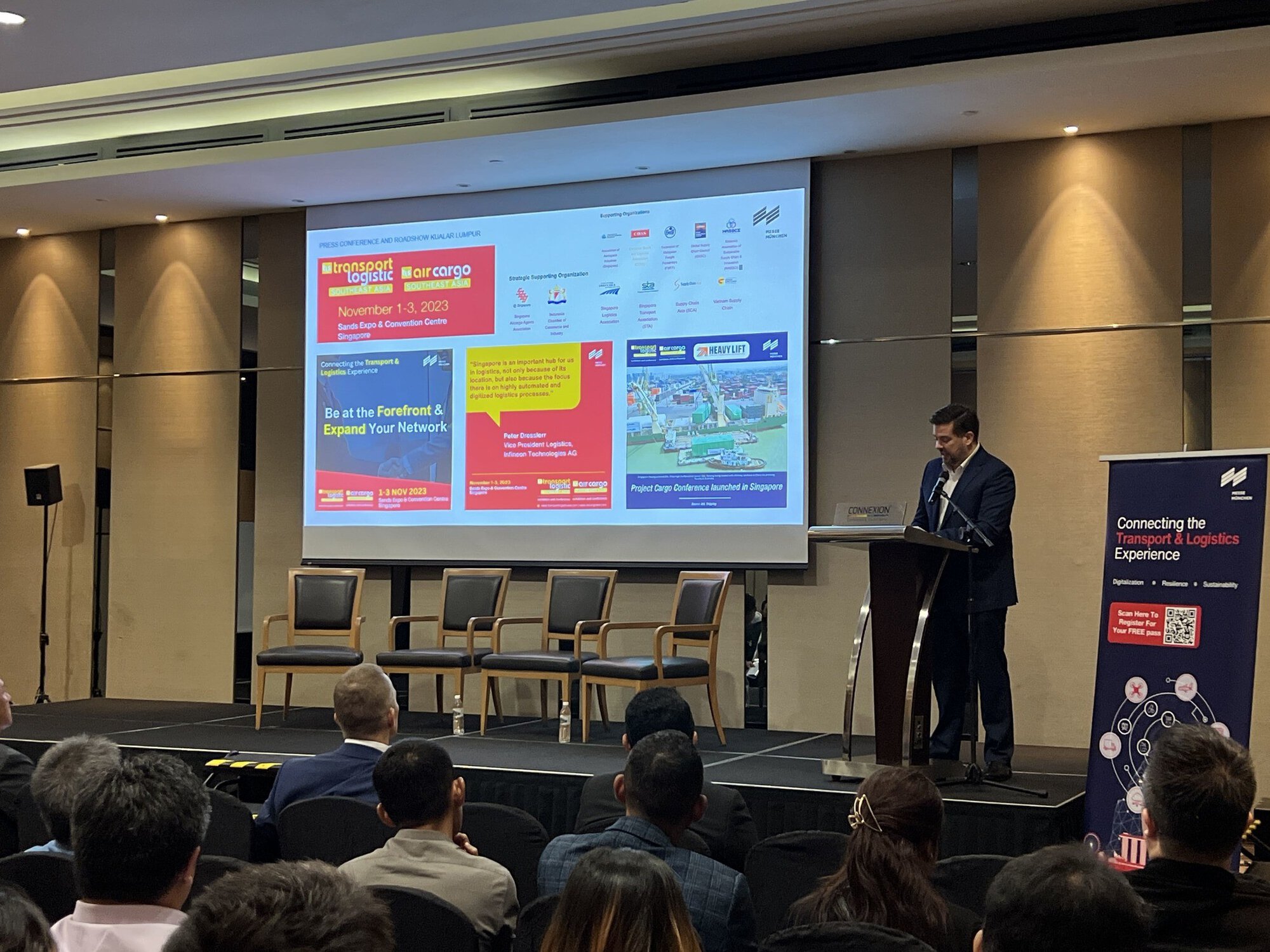 „Mit der der transport logistic und air cargo Southeast Asia haben wir eine Plattform geschaffen, die den Aufbau von Logistiknetzwerken sowie die Geschäftsbeziehungen zwischen Südostasien und wichtigen weltweiten Märkten fördert. Darüber hinaus bietet das facettenreiche Konferenzprogramm, das wir gemeinsam mit unseren Partnern organisieren, interessante Einblicke in den südostasiatischen Logistikmarkt“, sagt Michael Wilton, Geschäftsführer der MMI Asia, der regionalen Tochtergesellschaft der Messe München und ergänzt: „Mit der Project Cargo Conference tragen wir außerdem dem stark wachsenden Stück- und Schwergutmarkt in der Region Rechnung.“