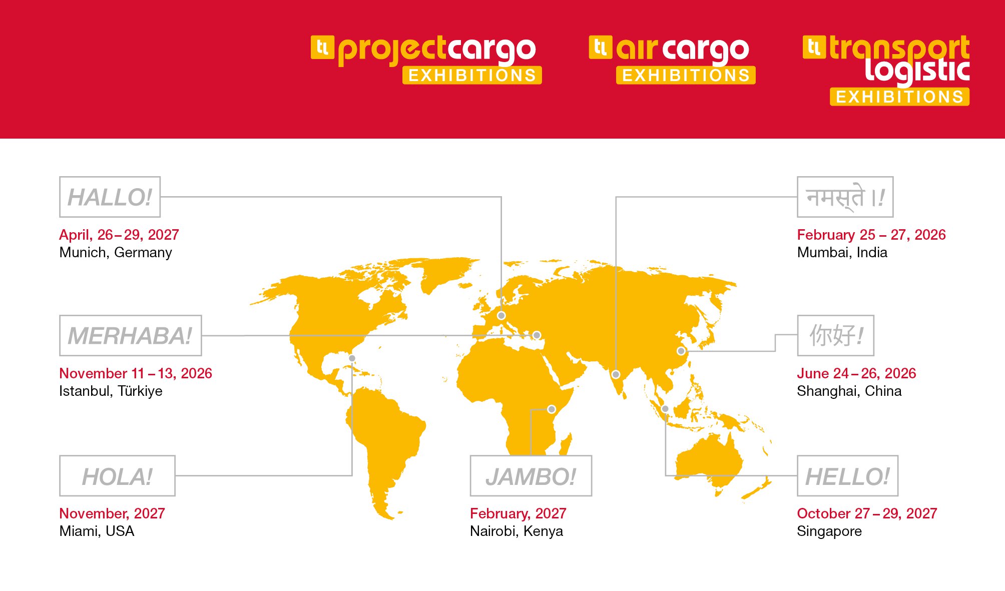 In addition to transport logistic Munich, the transport logistic exhibitions cluster offers a global network for decision-makers in the logistics, air freight and supply chain management industries with trade fairs in China, India, Singapore, Africa, America and Turkey.